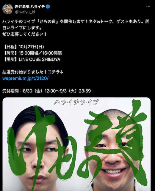 ハライチ岩井、単独ライブの詳細を公開!「面白いライブにします。」 | 話題の投稿