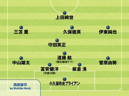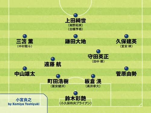 MF/三笘薫(中村敬斗)、鎌田大地、久保建英(堂安律)