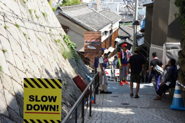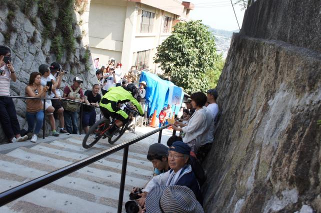 一般公道を疾走する、型破りなMTBダウンヒル・レースが今年も広島・尾道で開催された。高低差100メートル、約300段の階…