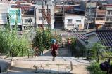 一般公道を疾走する、型破りなMTBダウンヒル・レースが今年も広島・尾道で開催された。高低差100メートル、約300段の階段を含む、過去最長約1400メートルのコースを走り抜ける。