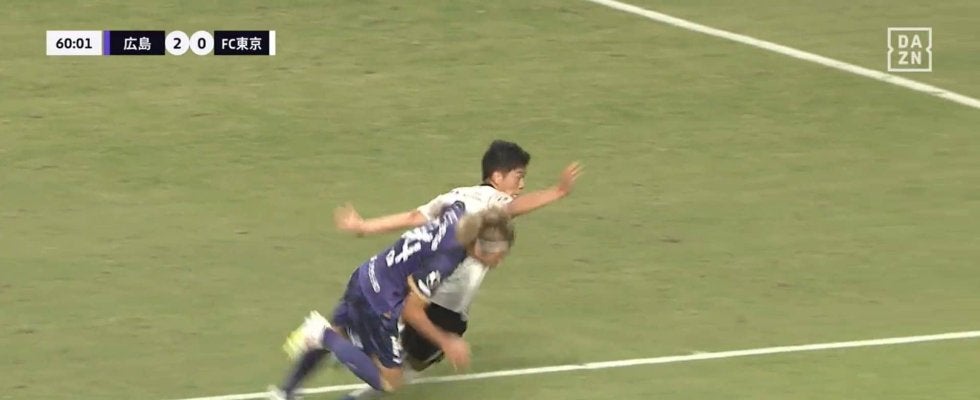 FC東京が2点差を追いかける60分だった。広島が左サイドを起点に攻め込み、ボランチの松本泰志が左のニアゾーンにスルスルと抜け出していく。これに対応したのがFC東京の高だ。インターセプトを狙うような形でボールと松本の間に体を入れて防ごうとする。しかし、この交錯で松本を倒してしまい、広島にPKを与える笛が鳴り響いた。