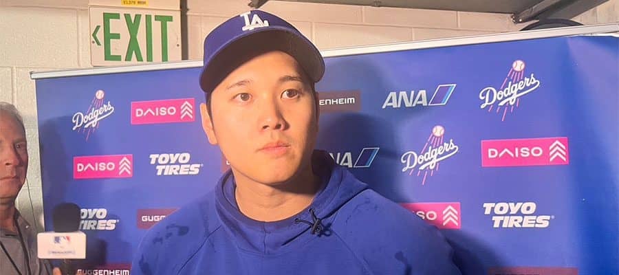 試合後の取材に応じたドジャース・大谷翔平【写真:川村虎大】