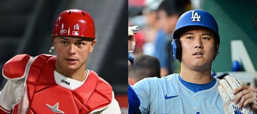 エンゼルスのローガン・オハッピー(左)とドジャース・大谷翔平【写真:Getty Images、ロイター】