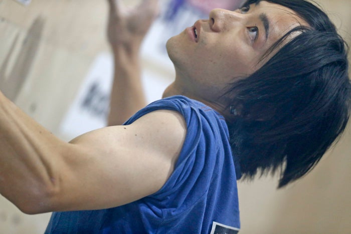 そしてメインとなるコンペティションは準決勝からスタート。ドイツ行きがかかるROCKSTARクラスには藤井、野中のほか、楢崎智亜や野口啓代、昨年優勝の緒方良行、原田海など、日本代表のトップ選手たちがずらりと顔を並べた。多くのクライマー、観客が詰めかけたなか、W杯と同様のベルトコンベア形式で彼らは次々とハイレベルなクライミングを披露していく。女子で1位通過したのは全4課題を一撃した同じく代表選手である加島智子。2、3位には野口、野中が、4~6位には2003年生まれの中学2年生、青柳未愛、柿崎未羽、工藤花の3人が入り、一回り以上年の離れた現代表と未来の代表候補6人が決勝にコマを進める形となった。男子では楢崎と原田が全完で決勝へ。山内誠、亀山凌平、緒方が続くと、リードW杯シャモニー大会から帰国したばかりの藤井も6位でファイナリストに滑り込んだ。