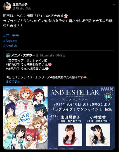 ラブライブ声優がラジオ出演を告知!サンシャイン‼︎の魅力を伝える | 話題の投稿