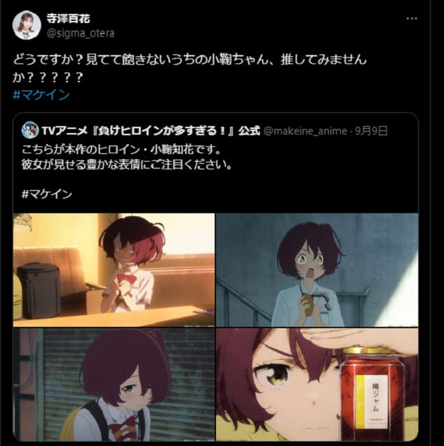 アニメ「負けヒロインが多すぎる!」で小鞠知花を演じる声優の寺澤百花が9月10日、自身のXを更新した。【画像】「負けヒロイ…