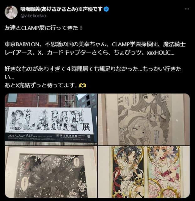 声優の 明坂聡美がCLAMP展へ!4時間いても観足りない!? | 話題の投稿