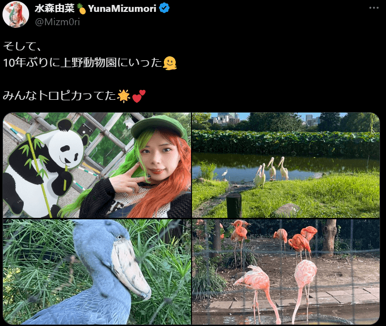 STARDOM 水森由菜、10年ぶりに上野動物園を訪問!「みんなトロピカってた🌟💕」 | 話題の投稿