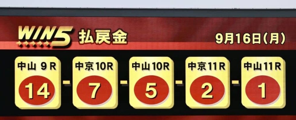 9月16日に行われたWIN5は5万5919票的中、1万140円の払戻しとなった。中山競馬場で行われたセントライト記念(…