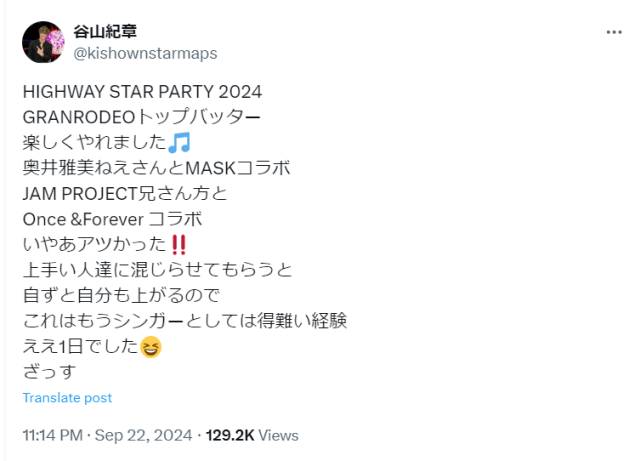 「気がついたら涙出てました」GRANRODEO・谷山紀章がイベントトップバッターの感想を綴る | 話題の投稿