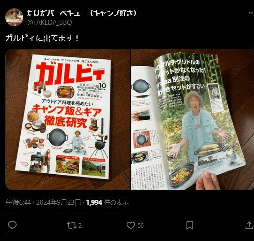 キャンプ芸人 たけだバーベキュー、雑誌『ガルビィ』で特集! | 話題の投稿