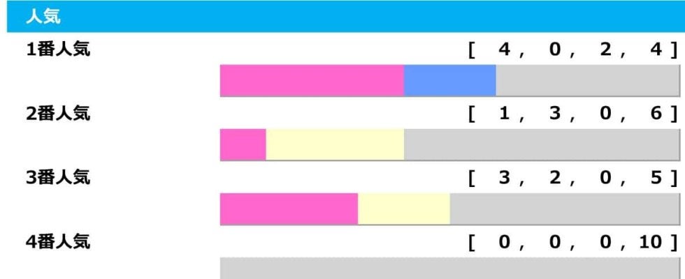 過去10年、1番人気が4勝挙げているが、2021年のグランアレグリアを最後に3年連続で勝ち星なし。いずれもGI馬やスプリントGI好走馬など、この舞台で1番人気に推されるだけの実績があるにも関わらず、勝ち切れていない。