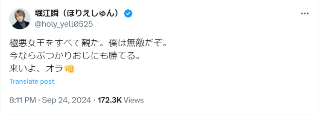 声優の堀江瞬が24日に自身のXを更新した。【画像】声優・梶裕貴、舞台『キングダム』で共演した俳優の個展へ足を運ぶ「コラボ…