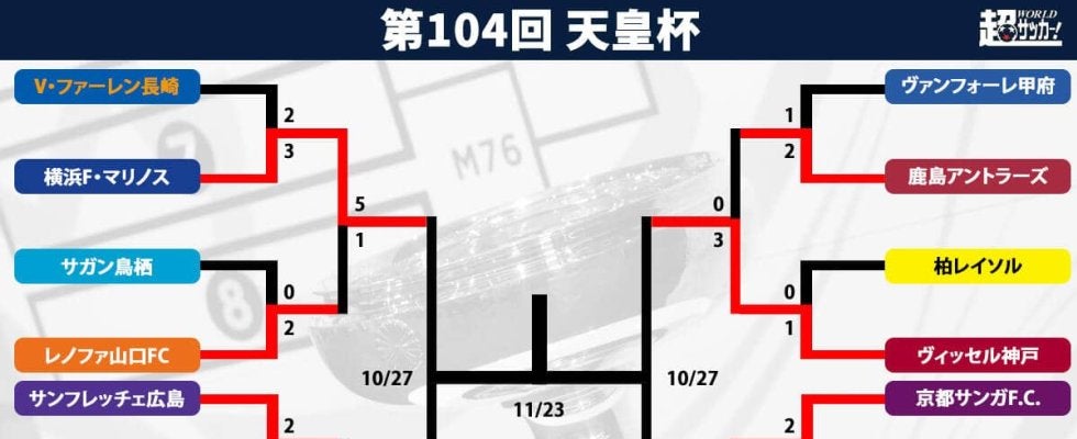 25日に準々決勝が終了。横浜F・マリノス、ヴィッセル神戸、ガンバ大阪、京都サンガF.C.がベスト4に勝ち残った。