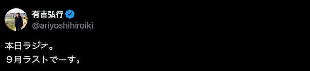 有吉弘行、サンドリ放送を告知「9月ラストでーす。」 | 話題の投稿