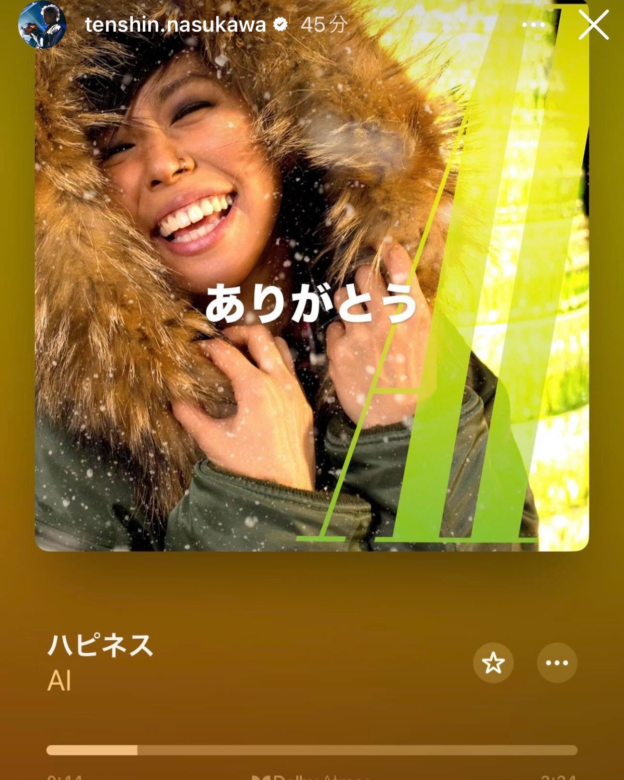 「ありがとう」と綴り、アーティスト・AIの『ハピネス』の写真と共に投稿。