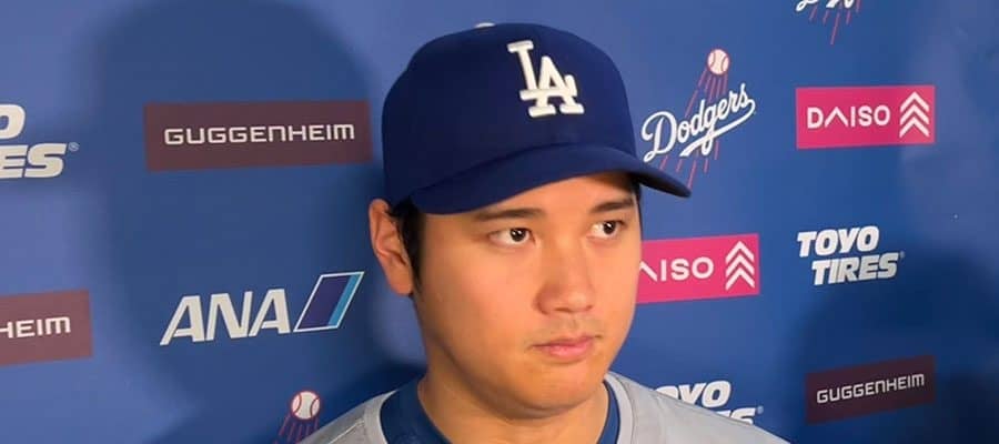 試合後の取材に応じたドジャース・大谷翔平【写真:小谷真弥】