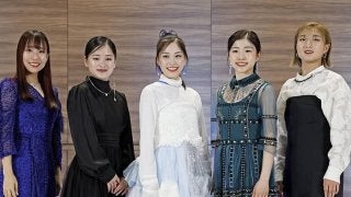 GPシリーズ記者会見に出席した(左から)三原舞依、渡辺倫果、吉田陽菜、千葉百音、坂本花織 Photo by KYODO …