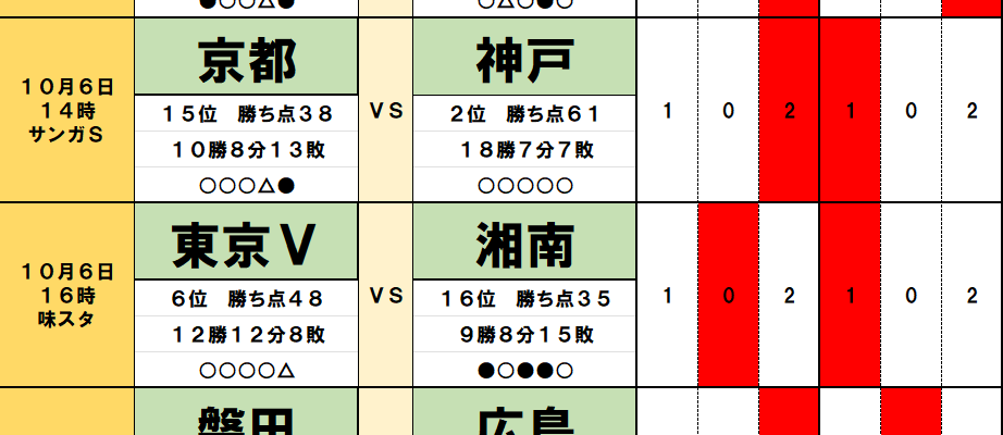 今節は、上位と下位の対戦が目立つ。混戦が続いたシーズンも終盤に入り、ジワジワと差が開いているが、順位が入れ替わる、差が縮まる予感が漂うカードが多い。