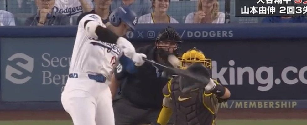 もうワケ分からん… 大谷翔平、衝撃“PS1号”が「エグすぎ」 ありえない“悪球打ち”に球場ドン引き…「それ打つか?」