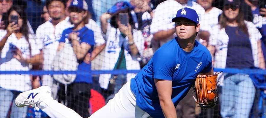 試合前にキャッチボールを行うドジャース・大谷翔平【写真:荒川祐史】