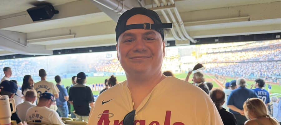 青と黄色が混在するドジャースタジアムに数人、赤いユニホームが混じっていた。5日(日本時間6日)に行われたドジャース対パドレスの地区シリーズ第1戦。大谷翔平投手にとって初の大舞台を見ようと、エンゼルスファンの姿もあった。