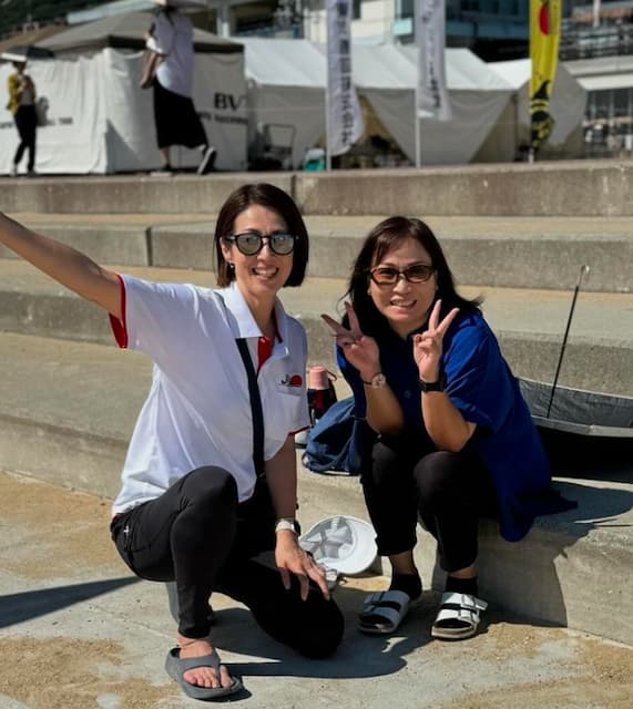 竹下佳江 須磨ビーチフェスタでビーチバレー・浦田とツーショット☀️