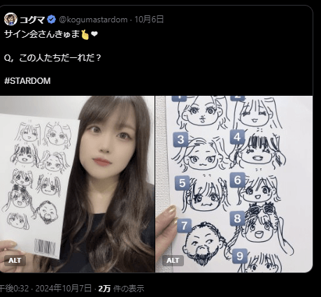 STARDOMのコグマが、先日のサイン会後に投稿した「この人たちだーれだ?」というクイズの答え合わせを公開した。【画像】…