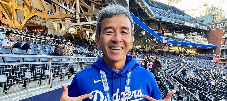 あまり声を大にしてドジャース・大谷翔平投手の応援できないかもしれない。それでも……。8日(日本時間9日)に敵地・ペトコパークでドジャースの練習を携帯カメラで撮影していたのが、YouTubeチャンネル「Shinsuke Handyman(シンスケ・ハンディマン)」を運営するシンスケさんだ。「今日は最上階から観戦します。公式のチケット転売サイトでなんとか購入できました」と苦笑いを浮かべる。