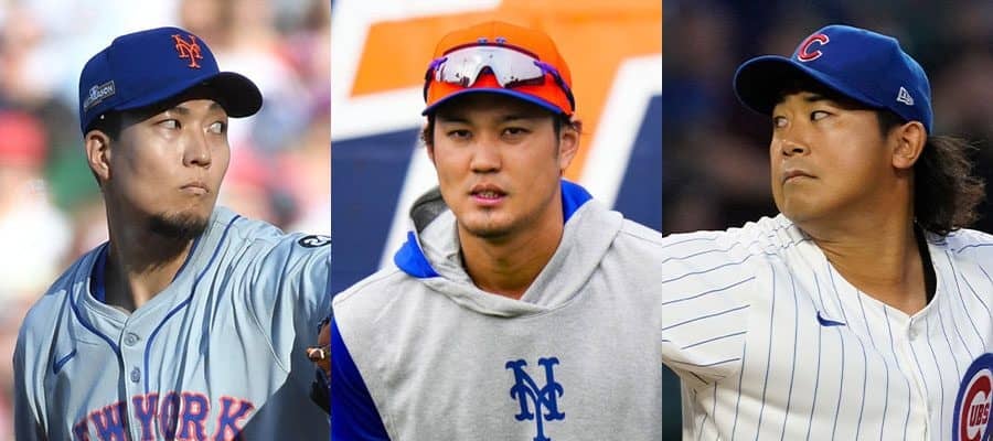 メッツ・千賀滉大、メッツ傘下の藤浪晋太郎、カブス・今永昇太(左から)【写真:ロイター、Getty Images】