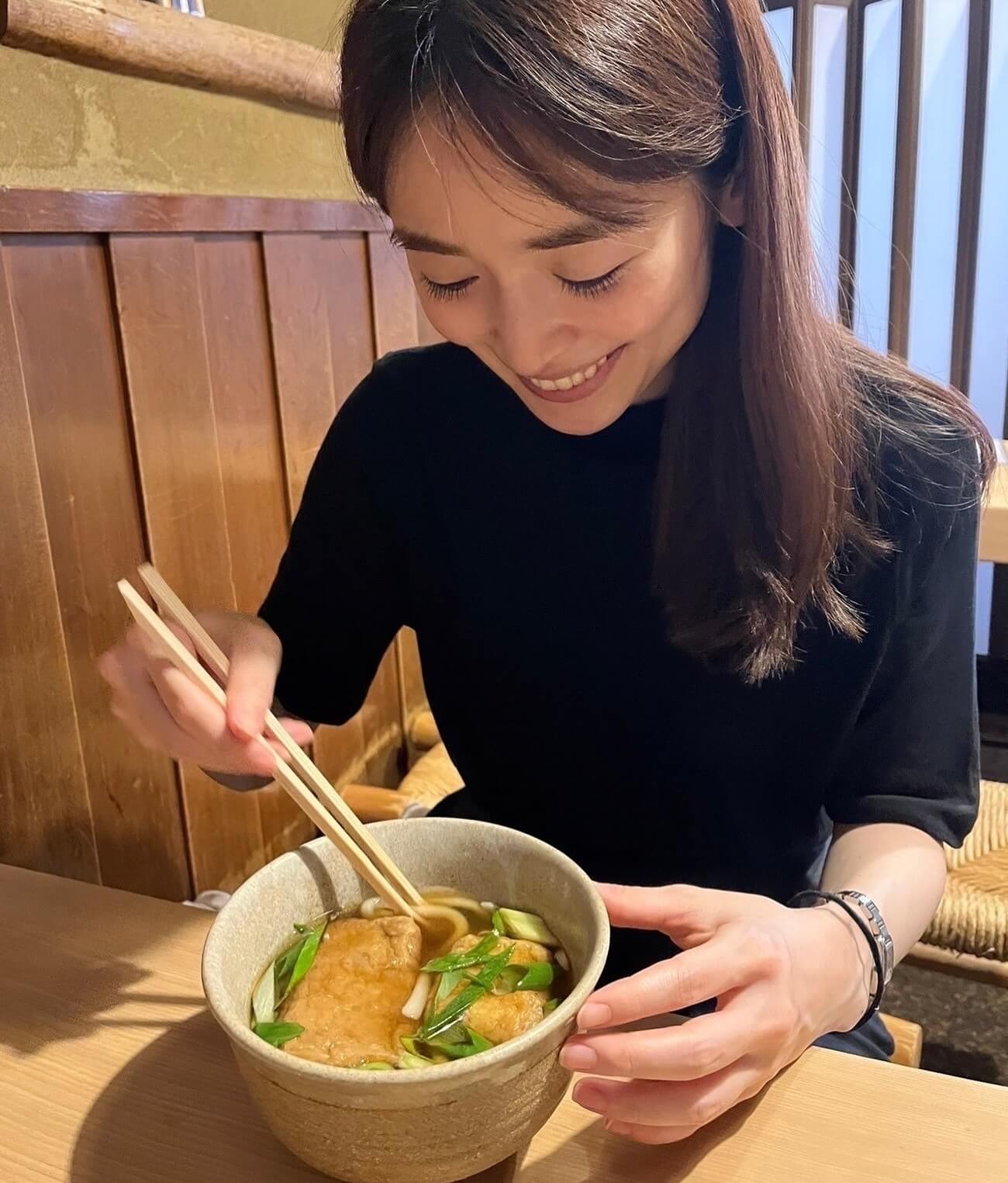 泉里香、きつねうどんを前に満面の笑みを浮かべる | 話題の投稿