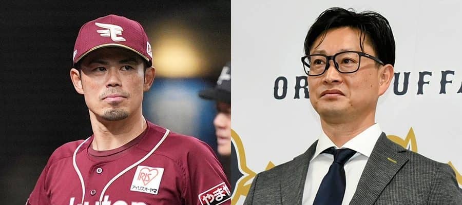 楽天・今江敏晃前監督(左)とオリックス・岸田護新監督【写真:小林靖、北野正樹】