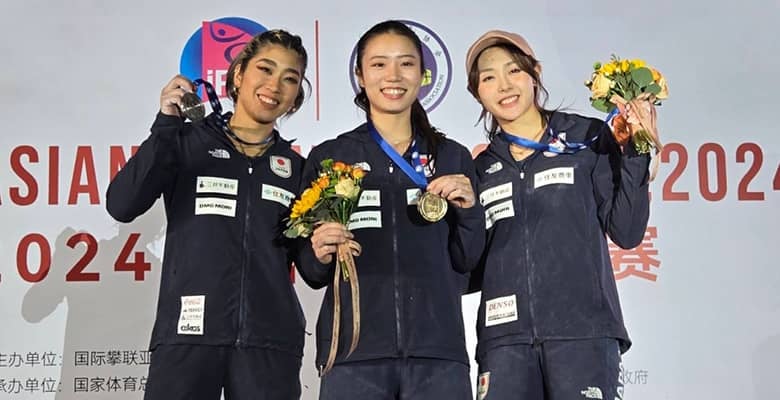 中国・泰安で開催されているクライミングアジア選手権で11日、女子ボルダーの決勝が行われ、松藤藍夢が1位、野中生萌が2位、伊藤ふたばが3位で日本勢が表彰台を独占した。