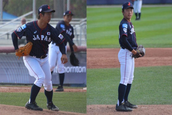 韓国戦に登板した侍U-18代表・田浦(左)と川端(右)【写真:沢井史】