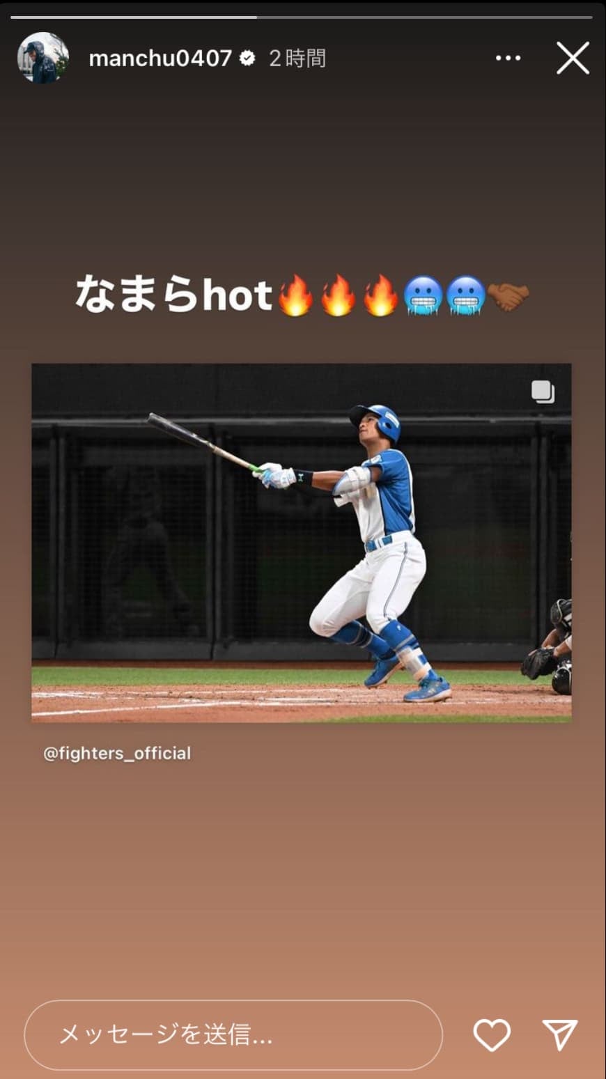 日本ハム万波中世「なまらhot🔥🔥🔥🥶🥶🤝🏾」9回裏に起死回生の同点弾放つ | 話題の投稿