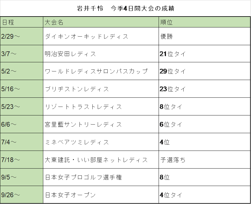 さらに、マスターズGCレディースのような4日間(4ラウンド)大会ではさらに安定感を発揮。