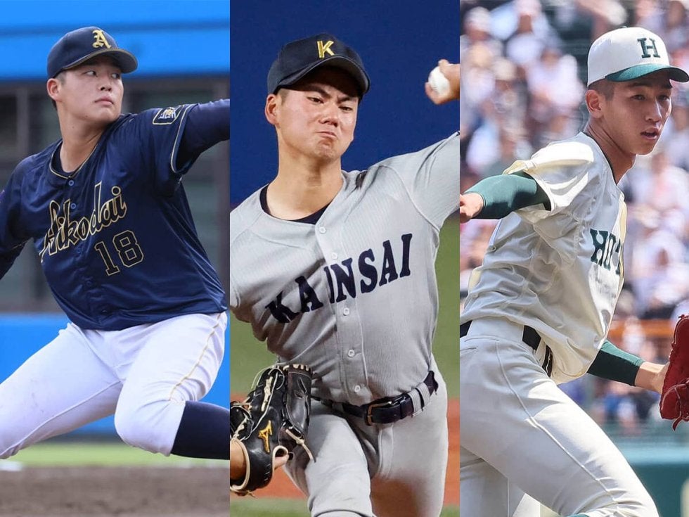 (写真左から)愛知工業大・中村優斗、関西大・金丸夢斗、報徳学園・今朝丸裕喜