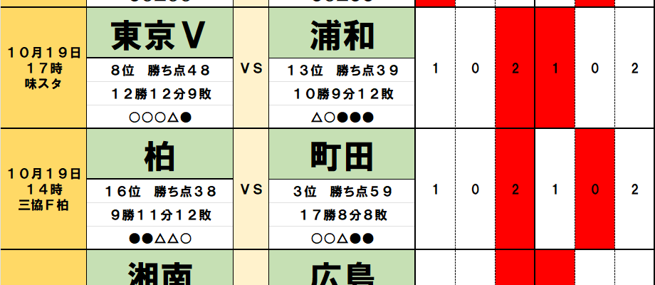 今回のtotoはJ1第34節の7試合と、J2第35節の6試合が対象となっている。過去のデータや直近の様子などから、分析を進めてみよう。