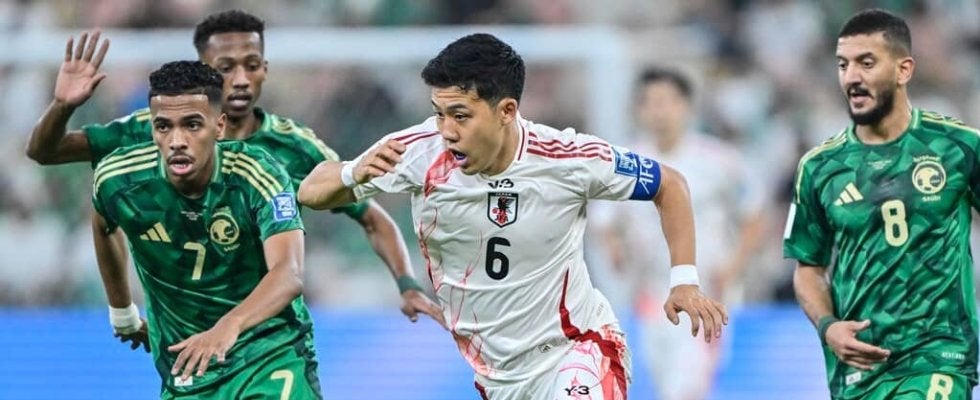 サウジアラビア戦ではサッカー日本代表のキャプテンマークを遠藤航が巻いていた 撮影:中地拓也
