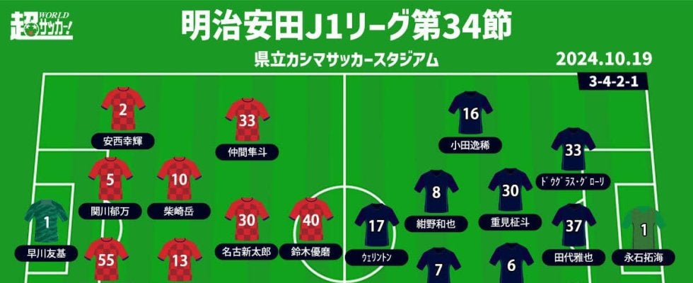 【明治安田J1リーグ第34節】 2024年10月19日(土) 14:00キックオフ 鹿島アントラーズ(4位/53pt) …