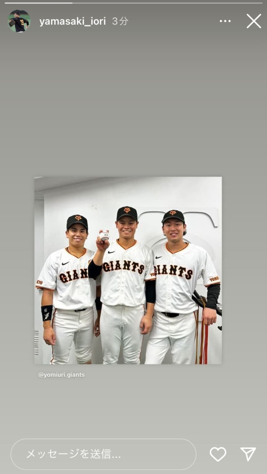 巨人の山崎伊織が20日、自身のインスタグラムを更新した【画像】上原浩治「昨日の正解は鳥谷〜‼️」前日のCSで解説。巨人崖…