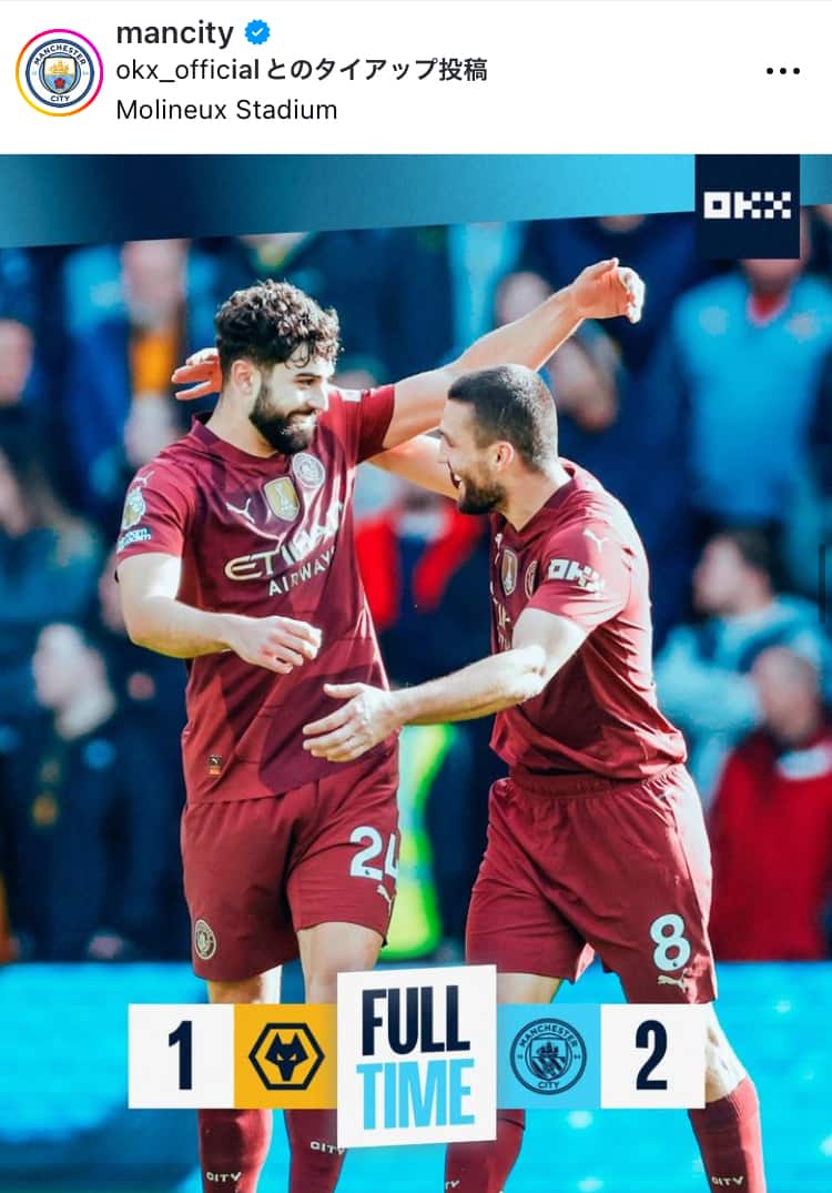 マンチェスター・シティ、プレミアリーグ第8節の試合結果を公式インスタグラムで報告!ファンの熱い反応が続々 | 話題の投稿