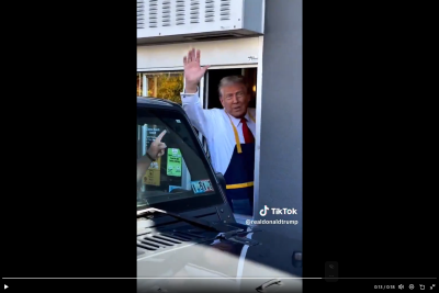 ドナルド・イン・マクドナルド⁉ 前大統領がまさかのお仕事。