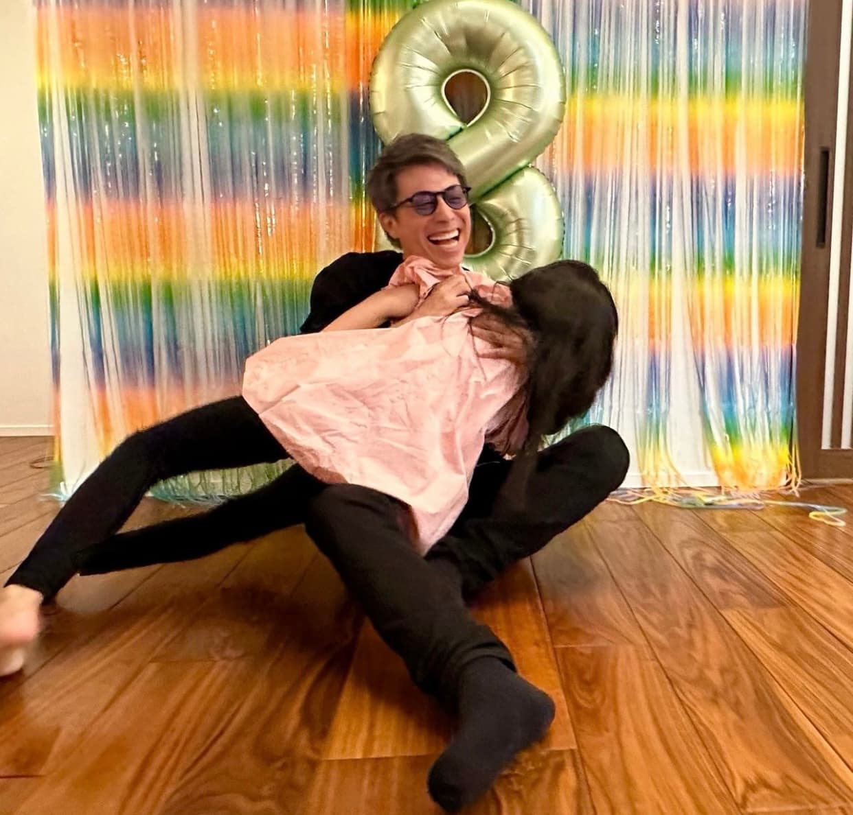 田村淳 走ってきてハグする恒例の記念撮影!!👏8歳になる美人娘を満面の笑みで祝福!! | 話題の投稿