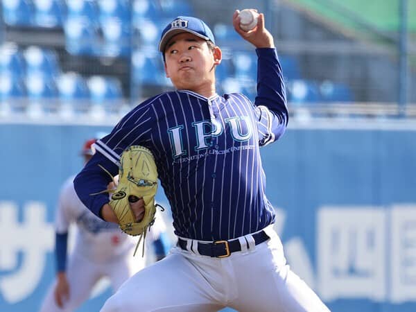 地方大学でも力のある投手がいるのだなと実感します。どっしりとした下半身で、打者に対して胸をなかなか見せずにしっかりとラインをつくって投げられる。とくに左打者は球の出どころが見づらく、脅威に感じるはずです。プロではリリーフでいい味を出しそうなムードがあり、森浦大輔くん(広島)のような成功イメージが湧いてきます。今後は左打者から空振りを奪えるだけの変化球の質を求めていきたいところ。たとえばスライダーをバットにかすらせないほどの精度に高められれば、プロの首脳陣も起用しやすくなるはずです。