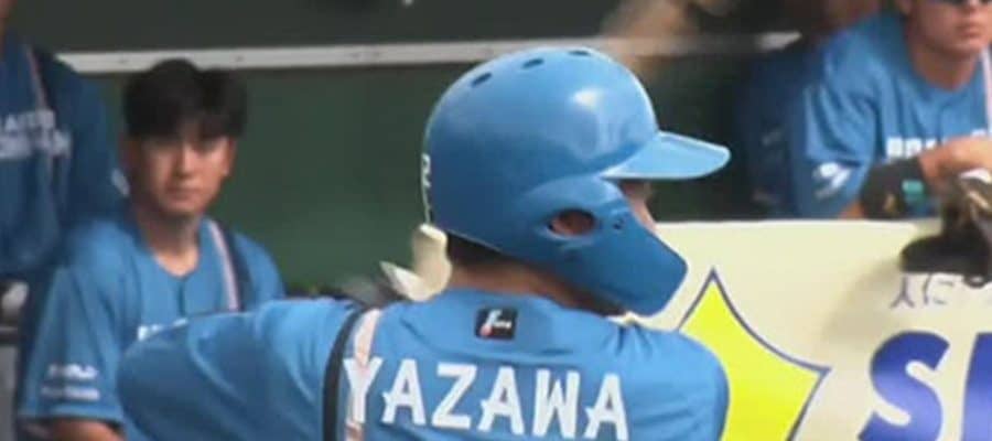 日本ハムは初回、2死から奈良間大己内野手が四球で出塁すると、野村佑希内野手に2ランが生まれて先制に成功。3回には矢澤宏太投手の適時三塁打と、宮崎一樹外野手の犠飛で2点を追加。続く4回には2死1、3塁から矢澤が適時内野安打を放ち、リードを広げた。