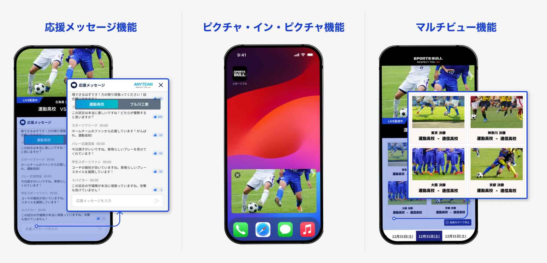 「SPORTS BULL」では、選手たちの貴重な一戦を見逃さないよう同日同時刻に行われている複数の試合を同時に視聴できるマルチビュー機能やピクチャ・イン・ピクチャ機能など、多様な視聴機能を搭載しているため、お客さまの視聴スタイルに合わせてお楽しみいただけます。