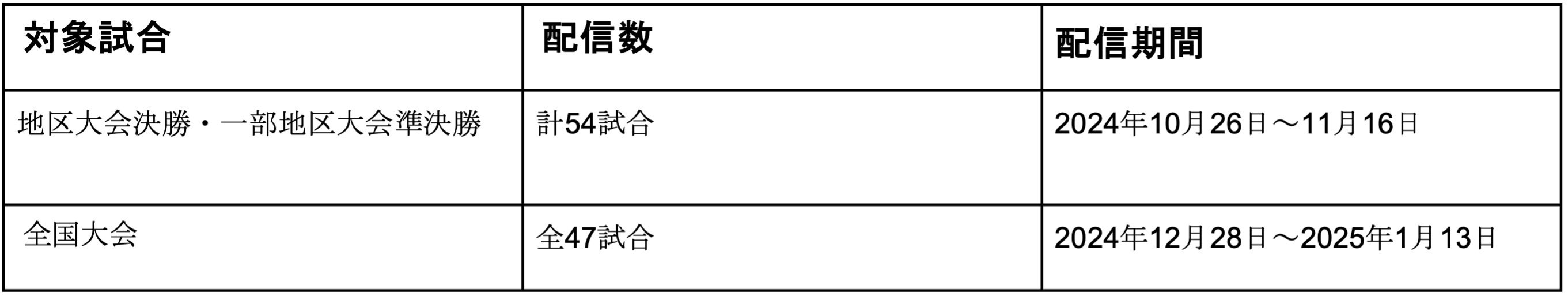 株式会社運動通信社(本社:東京都港区、代表取締役社長:黒飛 功二朗、以下 運動通信社)とKDDI株式会社(本社:東京都千代田区、代表取締役社長 CEO:髙橋 誠、以下 KDDI)および民間放送 43社は2024年10月26日から、第103回全国高校サッカー選手権大会と地区大会決勝、一部地区大会の準決勝の計101試合におけるライブ動画、アーカイブ動画およびハイライト動画を、運動通信社とKDDIが共同で運営するスポーツメディア「SPORTS BULL(スポーツブル)」の特設ページ(URL:https://sportsbull.jp/highschool_soccer/)で配信します。