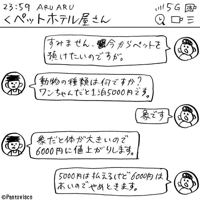 「んなわけあるかい!」クリエイター・パントビスコ投稿のシュールな「ペットホテル」とは?