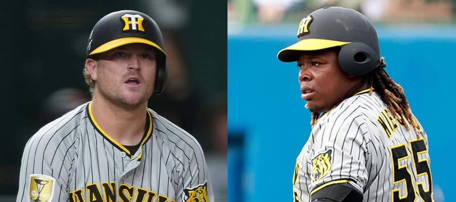 阪神から自由契約となったシェルドン・ノイジー(左)とヨハン・ミエセス【写真:矢口亨、小池義弘】